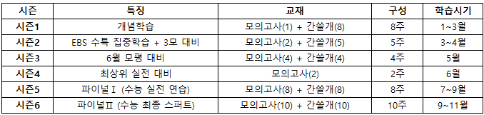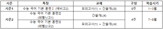 당해 수능을 앞둔 고3 및 N수생을 대상으로 한 이감 국어 프로그램과